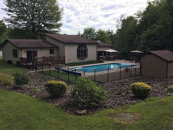 Space, Privacy, Pond, and a Pool! This contemporary Ranch boasts extra large rooms with vaulted ceiling, and the privacy you've been craving. Enjoy your oversized detached garage and shed for plenty of storage. Beautiful fenced in back patio with pool! This house has 1 level laundry, with an open floor plan. Very attractive and tucked away nicely with long lane leading the way!