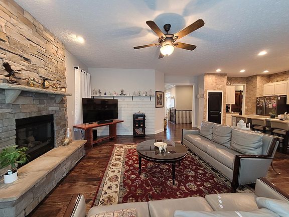 This prestigious home, once part of the parade of homes, is now up for sale! Located in the highly sought after Shawnee Crossing. As you walk through the front door, the hardwood floors lead you passed the glass double doors of the home office, into the open floorplan of the large living room with stone fireplace, to the kitchen with a massive island with granite countertops, and into the dining room with a vaulted ceiling. Take a step out the back door onto the patio, to take in the views of the mature trees that line the back of the property and sit on the paver patio that features a built in firepit with plenty of room to entertain friends. There are so many features this home has to offer, the fully finished basement, theater room, and much more! Set up a showing soon!