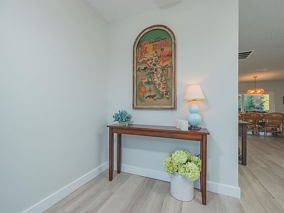 Affordable posh living! Welcome to the “Crème de la Crème of the Neighborhood” completely renovated from floors to roof. The open concept kitchen is a gourmet’s delight with stunning quartz counters, marble & patten-tile back splash, matched perfectly with upgraded GE appliances and a French door refrigerator, glass front cabinet accents, 42 inch upgraded cabinets with soft close, and 2 pantry cabinets. The flow of natural light embraces every room with all new windows, sliders & exterior doors. Serenity welcomes you to the owner’s suite complete with new double vanity, walk-in shower, spacious linen closets, all beautifully accented with new lighting & fixtures. The split-floorplan allows privacy for everyone. Additionally, the second bath has been completely renovated with new tile surrounds, flooring & fixtures. Custom closets in each bedroom. Quaint & peaceful is a rear porch with custom tongue & groove cedar ceiling complimented with accent pavers.*SEE ADDITIONAL MARKETING* This is a concrete block home, move-in ready, and completely worry free. It is absolutely stunning from front to back, but also brings peace-of-mind to the unexpected including a new roof, new garage door and motor, new electric panel, plugs & switches, new baseboards and door casings. No worries with plumbing, as this property has been re-piped. To stay warm in the winter and cool in the summer, the HVAC has been professionally cleaned and relocated to the garage with new lines. New attic insulation provides lower electric bills, making this home energy efficient. Embraced by beautiful landscaping, the front pavers and complete gutters and downspouts keeps everything beautiful and pristine. The little things that make a big difference includes the ambience of under cabinet lighting, recessed lighting, new lighting fixtures, and ceiling fans throughout. Clean and easy to maintain its year-round beauty with knock-down ceilings, new vinyl plank flooring, epoxy garage floor and complete interior and exterior paint. Want to live the Florida lifestyle to the fullest, it is all here for you to enjoy beauty and efficiency for many years of happiness.