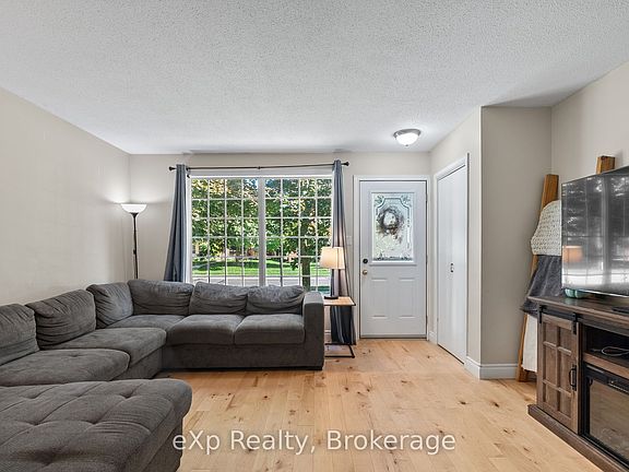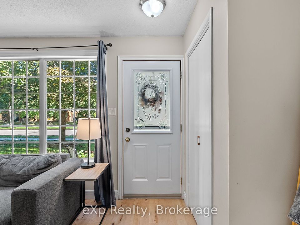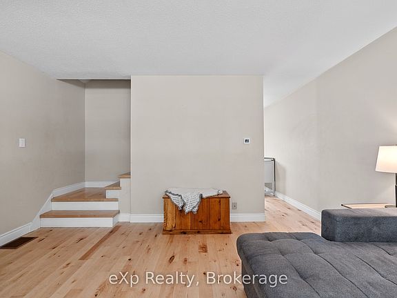 Welcome to this move-in ready 3 bedroom, 2 bathroom townhome in desirable South Stratford! Ideally located across from Dufferin Park and Dufferin Arena, with mature tree-lined streets and quick access to Hwy 7 leading straight into Stratfords charming downtown. Perfect for first-time buyers and families, this home offers updated flooring and stairs, central A/C, and the convenience of a separate bedroom and bathroom on the lower level. Two reserved parking spaces are included, and the low monthly condo fee covers water, lawn care, snow removal, and exterior maintenancemaking ownership simple and stress-free.