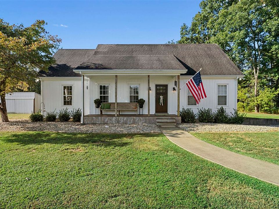 Welcome to your own private farm retreat! This versatile 27.19-acre property offers the perfect blend of modern comfort, natural beauty, and agricultural potential. Whether you're looking to enjoy the peace and privacy of country living, start a mini farm, or explore income-generating crop opportunities, this property is full of possibilities. The 4-bedroom, 2-bath farm house has been thoughtfully updated with new siding, subflooring throughout, shiplap accents, concrete countertops, new interior doors and trim, and the addition of a spacious covered front porch and back patio, ideal for relaxing and taking in the serene surroundings. Inside, the layout offers ample space for family living, while the unfinished walkout basement provides a perfect storm shelter and excellent potential for future expansion, workshop space, or additional storage. Step outside to a 48x36 detached metal barn, roughed in for plumbing and electrical — perfect for livestock, equipment, or future workshop. The property also includes an 8x16 shed, ideal for tools, feed, or garden storage. Perfect for those looking to raise horses, pigs, goats, cattle, and chickens — and yes, there’s a chicken coop already in place! Agricultural features include: Potential crop rotation with pumpkins, soybeans, corn, and hay, natural wild blackberry trees, Fertile ground for gardening or expansion. Wildlife is abundant — enjoy frequent visits from deer and turkey, making this a paradise for nature lovers and hunters alike. This is a rare opportunity to own a turnkey property with room to grow — both inside and out. Peaceful, private, and full of potential. Schedule your private showing today!