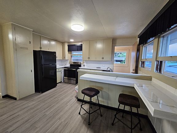 Renovated and Conveniently located Larger Hilo Home! This home has 4 bedrooms, 2 baths with 3 bedrooms/1 bath located upstairs and 1 bedroom/1 bath located downstairs. Home provides flexibility for your living arrangements, such as using the downstairs bedroom for guests, recreation room, home office, or even as a separate living space for extended family. The upstairs kitchen has solid surface counter tops, laminate flooring, a new ice box, and a range. Downstairs has a kitchenette area with a full-size ice box. Easy access to essential services, amenities, gas stations, grocery shopping, eateries and more. Furnishings in photos will be left with the home. Yard service included. No pets. Renovated and Conveniently located Larger Hilo Home! This home has 4 bedrooms, 2 baths with 3 bedrooms/1 bath located upstairs and 1 bedroom/1 bath located downstairs. Home provides flexibility for your living arrangements, such as using the downstairs bedroom for guests, recreation room, home office, or even as a separate living space for extended family. The upstairs kitchen has solid surface counter tops, laminate flooring, a new ice box, and a range. Downstairs has a kitchenette area with a full-size ice box. Easy access to essential services, amenities, gas stations, grocery shopping, eateries and more. Furnishings in photos will be left with the home. Yard service included. No pets.