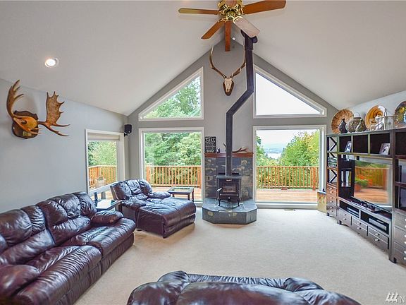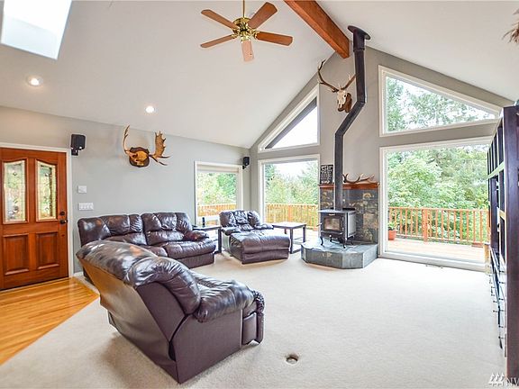 Beautiful home privately nestled on 5 groomed acres. Great layout with master on the main floor and bonus/rec room in the fully finished basement! Large picture windows provide natural light and Columbia River views. Kitchen features large island, tons of cabinetry, and is centrally located. Wrap around deck, patio with firepit, storage shed, and a large SHOP! Paved driveway with room for RV Parking. Generously sized bedrooms, vaulted ceilings, tons of storage space - this home has it all!
