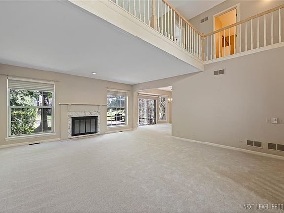 Welcome to Chateau Lorraine in Bloomingdale! This beautifully maintained 2-bedroom, 2.5-bath townhome features a dramatic vaulted two-story entry and a bright living room with bay windows and a cozy fireplace. The bayed dining room includes a slider leading to a deck with built-in seating - perfect for relaxing or entertaining. The fully applianced kitchen is equipped with a breakfast bar, granite countertops, decorative tile backsplash, under-cabinet lighting, and a closet pantry. Upstairs, the vaulted primary suite offers a walk-in closet and a deluxe private bath with double bowl vanity, whirlpool tub, and separate shower. An oversized loft provides versatile space for a home office, den, or lounge. Fresh new carpet enhances the move-in ready appeal. With a brick and cedar exterior, concrete driveway, and an ideal location in one of Bloomingdale's most desirable communities, this home is a must-see!