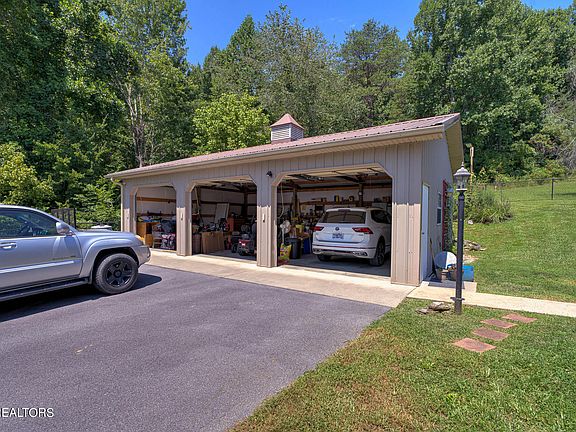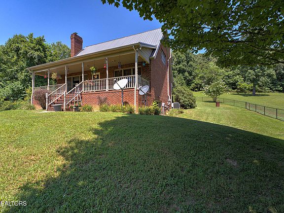 Country roads, take me home! This 3 bedroom 2 bath all brick home is a vision of East Tennessee living! Situated on 8+/- acres of beautiful rolling hills with a partially fenced in front yard, you can experience the abundant wildlife while also relishing in the convenient access to I-81 and Greenville. Johnson City, Kingsport, and Morristown are all just a quick drive up the road. The home's open concept, wood burning fireplace, cathedral ceilings, and bright interior make the main level of this home an inviting space for the family to gather. The exposed brick walls and hickory hardwood floors add a beautiful charm to this living space. Upstairs, is the perfect office space or crafting room. adjacent to this space is the master bedroom with a large en suite bathroom. The huge unfinished basement allows for ample storage space and has garage door access for parking lawn equipment. The detached 3 car garage and asphalted driveway allows for a multitude of parking spaces. Call today to schedule a showing.