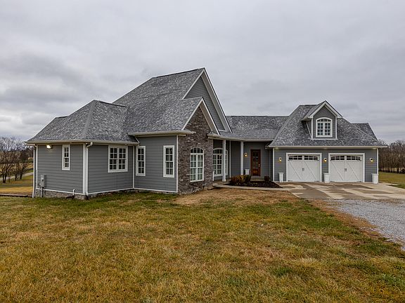 Gorgeous custom home located conveniently on the corner of Paynes Depot/Leestown Rd. This beautiful property is situated on 5 acres and offers panoramic views of Kentucky horse farms. The first floor greets you with a two story entry, formal dining room, home office, Great Room w/ electric fireplace, kitchen w/ custom amish cabinetry, huge laundry room w/ cabinetry/sink, powder room, master suite with tray ceilings & master bath w/ dual vanities, large soaking tub and tile shower. In addition, the home offers a 2nd floor above the garage bedroom (no closet) and a full finished basement with family rm/bar area, 2nd master suite with full bath, additional guest bedroom with a 2nd full bath and a theatre room. In addition, the property offers plenty of storage, spray foam insulation, 400 amp electric, rough in plumbing/electric for an outdoor kitchen and a pad with electric/plumbing for a R.V among many others. Set your showing today for this rare property before it is too late. Upgrade list is available upon request. **Home has a Lexington address but is actually in Scott county.