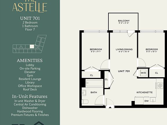 - Exterior features: Bicycle storage, Broker Exclusive, Fios Available, Guarantors, Package Receiving, Parking, Public Outdoor Space, Recreation Facilities, Roofdeck