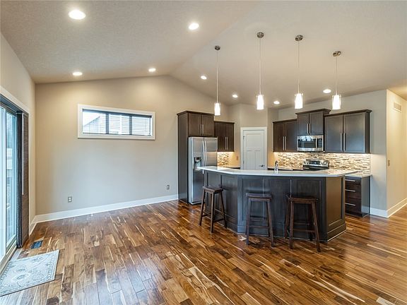 Immaculate 4 bedroom ranch house backing to trees & bike/walking path! The main floor features beautiful hardwood flooring in entry, kitchen & living room. Open floor plan with corner fireplace with stone to ceiling (TV stays!). Kitchen with new quartz countertops, walk in pantry, plenty of cabinets with pull out storage. Off the kitchen is area perfect for dining area with sliders to nice covered deck, landscaped yard & no neighbors behind you! Primary suite, 3/4 bath, walk in closet with access to laundry room w/sink. Two more bedrooms and full bath. Large drop zone area from garage w/8ft doors to accommodate large vehicles. Finished lower level w/spacious family room, another large bedroom & 3/4 bathroom. Huge storage/work out area. Waukee School District. Close to Aquatec Center, lots of trails & Jordan Creek. Easy interstate access.
