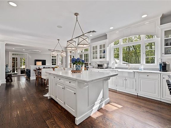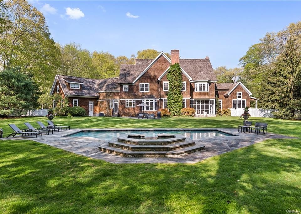 Old-world grace and symmetry combine with the most modern amenities. Over 7500 square feet of meticulously detailed living space with high ceilings, substantial millwork, wide crown moldings and raised paneling. Muted colors and timeless materials lend subtle sophistication. Covered Front Porch. Elegant Entrance Hall with graceful staircase. Beautifully scaled Living Room with Fireplace. Cherry Library. Formal Dining Room with marble Fireplace. Butler s Pantry. Spectacular Kitchen with Breakfast Room open to Family Room with Fireplace. Opulent Master Suite with Fireplace. Four additional Bedrooms with en suite Baths. Nanny/Maids Room with Bath. Gym. Playroom. Screened Porch and rear terrace for alfresco entertaining. Long gated drive to nearly seven magnificent estate acres. Breathtaking landscaping with irrigation and landscape lighting. Shoreline Pool with Spa. Generator. A phenomenal offering.