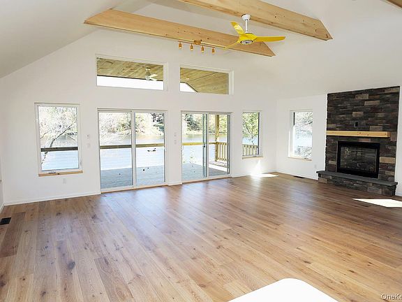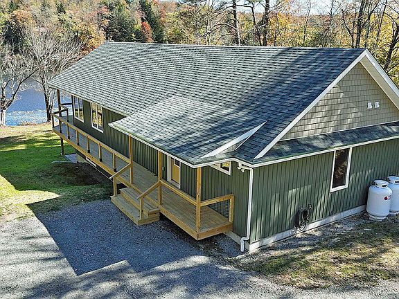 Lakefront living doesn't get easier than this! Enjoy beautiful Lake Muskoday from this brand new lakefront beauty, thoughtfully crafted by one of the area's premier builders. The focal point of the home is a huge covered deck to take in the water and the sights. Walk into the 3BR/3bath home from off the wraparound deck. You'll be awed by the light-washed beautiful kitchen, featuring a multitude of cabinets and counter space. It opens into the great room: a spacious dining/living area, which looks out over the lake. It's peaceful, mesmerizing and ever-changing. In the living area, you're drawn to the stone fireplace, pleasing to the eye and adding comfort on chilly evenings. There are 2 nice-sized bedrooms and baths on the main level. The primary BR has wood floors, an attached full bathroom, and a large closet with built-ins. The second bedroom is down the hall, separated by another large full bath. Go downstairs and find the third bedroom and full bath. You'll want to hang out down there in the huge family room, with a built-in wet bar/wine fridge. The sliders also open to the yard and lake on this level. You can make an office or studio down here as well. Behind that closed door is the systems room: it's spacious, with a utility sink. Lake Muskoday doesn't allow motorized watercrafts, so you'll not be disturbed by jet-skiers or loud engines. Kayak, canoe, swim or fish to your heart's content without bother! The home is centrally-located, just 10 minutes off Route 17 in Roscoe. Roscoe is known for being the fly-fishing capital of the Eastern US: "Trout Town USA". It also has terrific restaurants and shops and the world-famous Roscoe Diner! Not far from Livingston Manor with its shops and eateries as well.