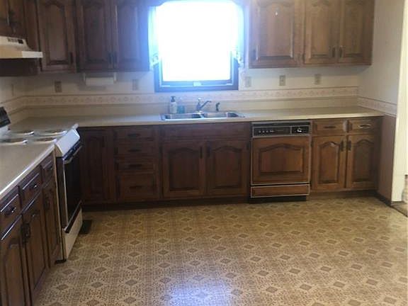 Well kept and taken care of home! This property sits on two city lots on the corner of Elm and 8th! You will love the large rooms, As well as the extra storage spaces. There is a two car detached garage, plus a small out building and double car port. So much potential!! Wheel Chair Accessible.