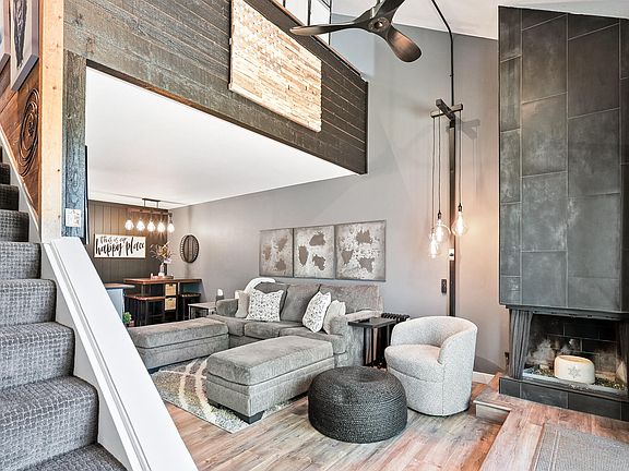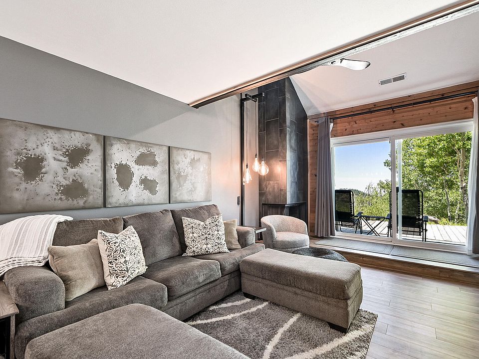 Mountain Retreat Townhome - No Steps Required Step directly into this charming rustic farmhouse-style townhome featuring one bedroom plus a loft, 1.5 bathrooms, and soaring vaulted ceilings filled with distinctive character. Thoughtful details show throughout every corner, revealing carefully chosen amenities: a spacious walk-in closet, stunning custom tilework, and a built-in wall safe for peace of mind. Modern conveniences include remote-controlled ceiling fans, automated window shades, and an integrated Bluetooth speaker system in the powder room. The thoughtfully designed layout provides comfortable sleeping for up to six guests across three distinct areas: the master bedroom with king bed, the loft featuring a full bed, and the living area with a queen sleeper sofa. Each sleeping space offers privacy and comfort. This coveted corner unit maximizes natural light through abundant windows, while the expansive 400-square-foot semi-private deck serves as an outdoor sanctuary perfect for grilling or simply taking in the breathtaking mountain and canyon vistas. The impressive 8-foot sliding glass doors seamlessly blend indoor and outdoor living spaces. Tucked away from busy streets among stately cabins, the property offers frequent wildlife sightings, deer, foxes, and other native creatures, while maintaining easy access to town with just a 15-minute stroll to the center.