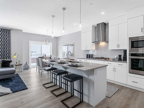 Welcome to your new home in one of Calgary's newest and most accessible communities - Hotchkiss. This beautifully designed 2040 SF home with a double car front attached garage and rear deck offers the perfect balance of comfort, style, and convenience—a short 5 minute drive to Seton amenities and quick access to Stoney and Deerfoot Trail. Step inside to find an open-concept floor plan filled with natural light, high ceilings, and modern finishes throughout. The spacious main floor features a large flex room suitable for a home office, and flows seamlessly into a gourmet kitchen complete with upgraded Samsung stainless steel appliances, quartz countertops, and a generous island—perfect for entertaining or casual meals. Upstairs, the primary bedroom is your personal retreat with large windows, a WIC and ensuite. Two extra bedrooms and a spacious bonus room provide ample space for entertaining, as well as comfortable accommodations for family and guests.