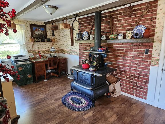 Welcome to Beaver Brook Farm. Charming 2 BR Ranch with 34 acres of fields, woods, 2 farm ponds and apple orchard. Nice level lot. Great place to homestead. Home has LR with fireplace, Dining room w/wood cookstove. {Was a 3rd bedroom.)Cheery kitchen w/dining area. Finished mudroom. Heated She Shed. Paved drive. Extra large garage.