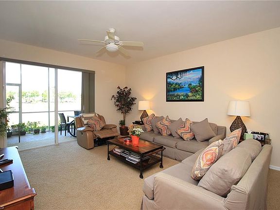 NEW PRICE *Beautiful 1st floor Veranda / Condo that offers a golf course, designed by renowned Florida architect Gordon G. Lewis. The cypress heads, pine forests, rolling fairways, elevated greens, & tees create a natural flow that will carry you away from the tensions of modern life into the world of golf. You will have the chance to play through wetlands & nature preserves that offer beautiful scenery & views, alongside a fun round of the greatest game ever played. Newer appliances. This is a must see! Amenities include putting & aqua range, Clubhouse dining, community & club house pool, tennis courts, fitness center, bocce courts, walk/jog/bike paths & an active social calendar. Exceptional value in this resort style Bundled Golf Community, whether a snowbird looking to own a piece of paradise or year round resident. Enjoy serene sunsets & panoramic views of the golf course & lake from the lanai. Master bedroom features his & her closets, dual vanities & tile shower. detached garage. new roof in 2020 Just minutes from Beach, Shopping, Restaurant, Airport & more.