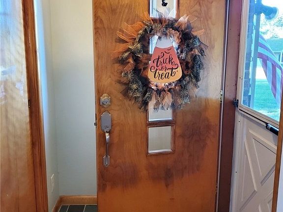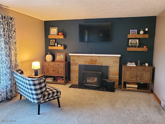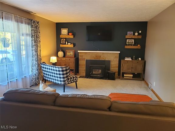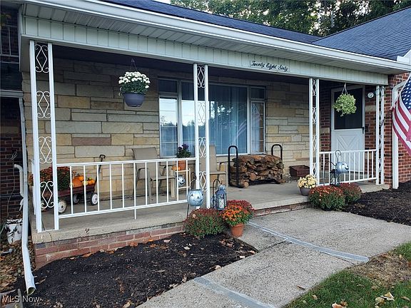 Fabulous Find! Welcome to the fall season with great views surrounding this charming 3 bedroom, 2.5 bath cape nestled on 2.36 acres! This beautiful brick & stone home features a front porch, inviting entry, spacious living room with a woodburning fireplace, open dining room & applianced kitchen with plenty of cupboards, a corner sink & coffee bar, a large 4 season sunroom/family room with sliders to the exterior as well as a 1st floor home office/bonus room near both family room & as an extension of the primary bedroom and 2 bathrooms. Bedrooms include a first floor bedroom as well as 2 bedrooms upstairs with another full bath. Upstairs boasts of a second floor walk-in attic and plenty of side storage space. Full basement includes an updated finished rec room/theater room complete with wood burning fireplace, built-in bookcases, movie projector & raised bar/kitchen for entertaining. Lower level also features extra storage, laundry and walk-up access from basement to the backyard. Outside you will find a garden, firepit, koi pond with waterfall, covered back patio complete with porch swing & side patio, woods, a ravine, plenty of parking (including RV parking), a 2 car attached garage AND a long private driveway back to an extra 2 car garage (18x22 plus 17x30) with metal roof & concrete floor. Some of the many updates include: pressure tank (2024), dishwasher (2024), water softener (2021), living room fireplace insert (2021), lean-to garage (on right of extra outbuilding 2019), hot water tank (2019), some newer windows & sewer (2016). You will FALL in love with all this property has to offer.