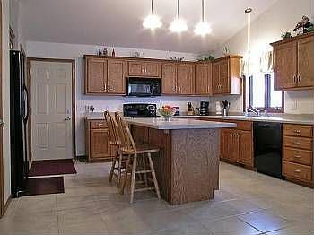 Completely finished walkout ranch featuring 4 bedrooms, 2 full bathrooms and upgrades galore! Main floor offers an amazing open floor plan boasting 12 foot vaulted ceiling! Kitchen features a large center island, pantry and 18" ceramic tile; dining rm has ceramic tile and access to deck; and fabulous living room w/ panoramic views! Master bedroom has double closets.