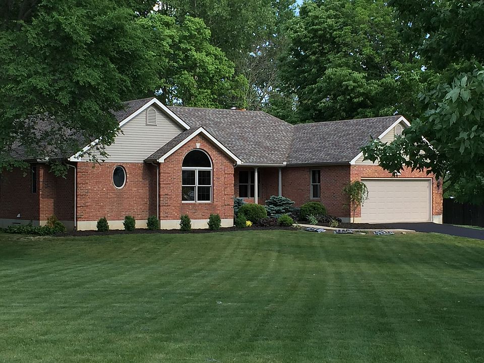 IMPRESSIVE HOME! Beautiful 3 bdrm. 2.5 bath country setting has deeded pond rights, including fishing in stocked pond. All-brick home w/comfortable, open floor plan w 1st flr laundry. Great room has cathedral ceilings, skylights, a gorgeous floor to ceiling brick wall with wood-burning fireplace, custom built-ins and french doors opening to deck overlook creek and pond. The kitchen has loads of cabinets, swing-out pantry, desk with custom features, glass-front cabinet! Kitchen has beautiful angled walls and breakfast nook which opens to the deck and screened porch. Beautiful formal dining room is just steps from the kitchen with a stunning, arched window! Master bedroom has cozy reading nook, opens to screened porch overlooking the creek and pond! Master bath has dble vanity, make-up vanity, shower w/garden tub.