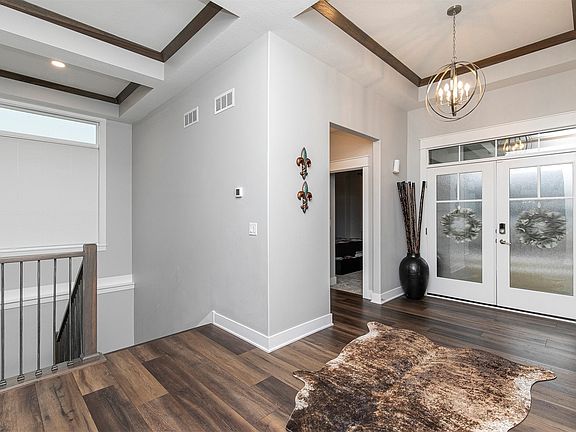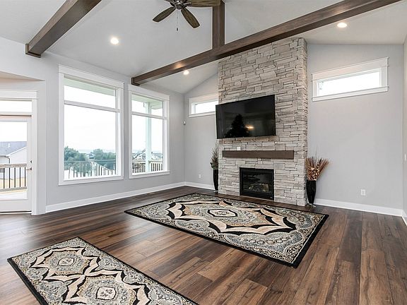 Beautiful near new ranch style home with upgrades such as a security system, Ecowater water softener and purification system, and Samsung smart refrigerator all included in the sale. This three year old home has double front entry doors with a wide foyer/hallway to invite guests, a large living room with wood beam ceiling, floor to ceiling stone fireplace, and large picture windows providing plenty of light while entertaining. The living room opens to the kitchen which contains plenty of storage, quartz counter space, stainless steel appliances, and a large pantry. The master suite contains a bathroom with a double vanity and large tile shower, and walk-in closet with a pass through to the laundry room and mud room which contains a bench seat/coat rack. The main level contains another bedroom and bathroom near the front of the home. The walkout lower level is finished with a large family room which contains a wet bar and game area, two additional bedrooms and bathroom, a large unfinished flex room which could be a 5th bedroom, and utility room. Ecowater system comes with three years remaining on free detergent, soap, and shampoo. Washer, dryer, and basement refrigerator are reserved.