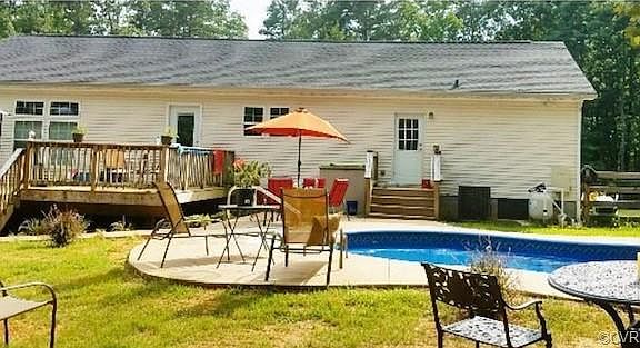 Welcome to your own private oasis! 2860 Roundabout Rd is 3.49 acres nestled in Louisa County within 5 miles of I64, for easy access to Richmond or Charlottesville. You get to enjoy 2 living spaces so the adults and the kids have their own comfortable areas. The kitchen offers loads of counter space for all your cooking and prepping needs and is open to the dining area and sunken great room. This great room has an abundance of natural light to view all the wildlife while enjoying your gas fireplace. The spacious master bedroom has an attached en suite with dual vanity and a garden sunken tub for the ultimate in relaxation. The other 2 bedrooms also offer plenty of space and storage. The whole house has new stylish laminate flooring and lovely lighting upgrades. You will be the envy of your friends in your backyard with a wonderful inground saltwater pool with beautiful hardscaping for lounging. The pool is equipped with a Pentair Super Chlorinator System and party lights around the pool for all your entertaining. Your backyard has plenty of grass space and fencing as well for your furry pets to enjoy with you.