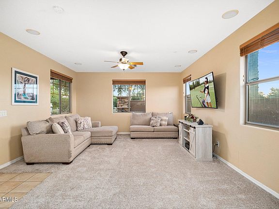 Welcome to the original model home of a reputable builder, Richmond American. Packed w/ upgrades & moments from San Tan Village's shopping, restaurants, movies, Top Golf & Costco! Enjoy a low maintenance, corner lot w/ a true private backyard where no neighbors can peek in. Imagine string lights, a hot tub, & bbq's, let your vision wander w/ this exclusive space! Soak up peaceful moments seated on the front covered patio while watching family play in the front yard. Walk in & admire the 9 foot ceilings, brand new carpet, plenty of windows & large living spaces. Test your culinary skills in the fully loaded kitchen with all new Samsung appliances, extended cabinets, oversized island w/seating & pantry storage. Separate wings of the home offer a private homeowners suite on one side equipped Welcome to the original model home of reputable builder, Richmond American. Packed w/ upgrades & moments from San Tan Village's shopping, restaurants, movies, Top Golf & Costco! Enjoy a low maintenance, corner lot w/ a true private backyard where no neighbors can peek in. Imagine string lights, a hot tub, & bbq's, let your vision wander w/ this exclusive space! Soak up peaceful moments seated on the front covered patio while watching family play in the front yard. Walk in & admire the 9 foot ceilings, brand new carpet, plenty of windows & large living spaces. Test your culinary skills in the fully loaded kitchen with all new Samsung appliances, extended cabinets, oversized island w/seating & pantry storage. Separate wings of the home offer a private homeowners suite on one side equipped w/ dual vanity sinks, soaking tub, standing shower, enclosed restroom, & walk-in closet. Remaining bedrooms on the opposite side & laundry room on the upper level, this floor plan has all the perks! Don't forget to note the surround sound speaker system, perfect for light jazz when entertaining guests, a half bathroom on the main level, the 2 car garage w/ epoxy floors & a freshly painted exterior! Come take a walk through and get that feeling you are right at home as soon as you walk-in.