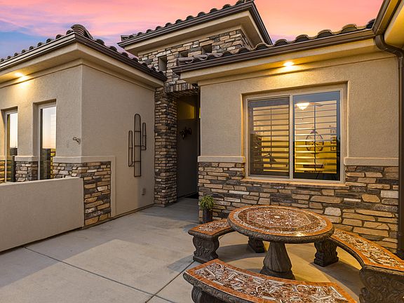 Take in the UNOBSTRUCTED VIEWS OVERLOOKING THE VIRGIN RIVER & PINE VALLEY MOUNTAIN thru 1 of the many picture windows and oversized slider. The backyard is a serene getaway with a built in outdoor kitchen, top notch mister system, sunken hot tub, large yard with tons of plants, trees, grapevines, and a gas fire pit to relax by. The interior is equally impressive with the large kitchen island, pantry and fantastic living room fireplace with surround sound in the ceiling. The garage is set up nicely with a generous workshop that has it's own HVAC to keep you warm or cool as you're working on your next project. Park your RV or trailer on the concrete RV pad with power and water. It would be a near possible task to find a cleaner home with these amenities at this price!
