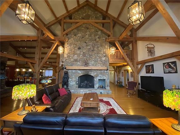 Superior Craftsmanship! This exquisite home has all the amenities you would want! Features a lovely open floor plan with a huge living room area, gorgeous stone fireplaces, in floor heating and lots of windows! Large master bedroom on the first floor with master bath and large walk in closet. Second bedroom on the first floor with a bath and 2 nice size bedrooms on the second floor. Large eat in kitchen with top of the line appliances, Corian and granite countertops, and a beautiful double sided stone fireplace between the kitchen and dining room area. Home has 4 huge stone/mortar fireplaces, game room, and huge family room with a stone fireplace and French doors that lead out to a nice patio. Lovely oak flooring throughout, oak stairwells, and a nice weight room in lower level. Gas heat with central air and a nice size 2 car garage. This is a one of a kind home!