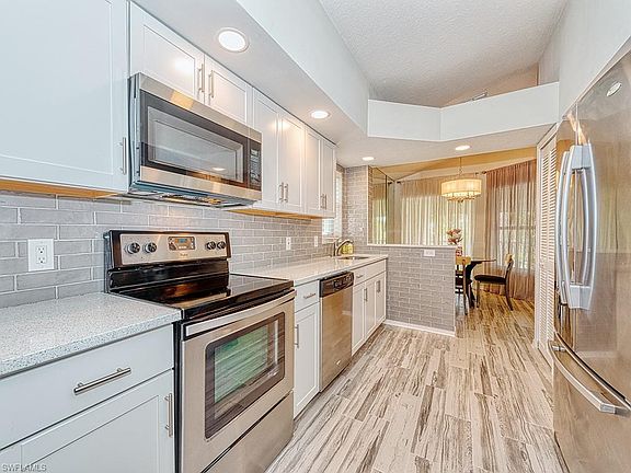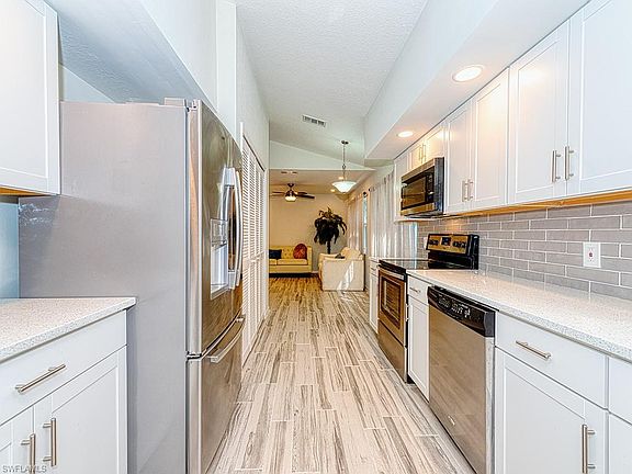 Completed remodeled, Move in Ready , AND LOWER PRICE PER SQFT!! Second floor end unit condo, just steps from pool and Jacuzzi, New Kitchen, New Bathrooms , spacious kitchen Stainless Steel Appliances, all tiled included lanai, Master Suite with extra Vanity and Sink area outside the Bath, walking closets, newer washer and Dryer, Short walk or bike ride to Barefoot and Bonita Beach, a short drive from the Mercato shoppes, SWFL International Airport & Miromar Outlets! Wonderful community with great management and low HOA fees. Naples style with a Bonita address.