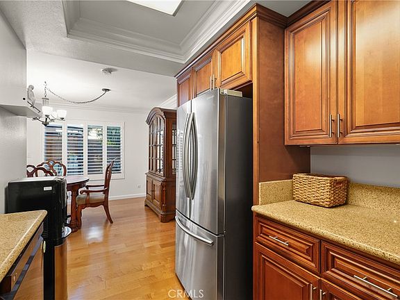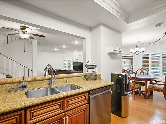 So many upgraded features including a newer HVAC system, plantation shutters throughout, REMODELED kitchen with newer refrigerator, range and microwave, beautiful wood flooring in main areas and newer carpet in bedrooms, new primary bath shower, quality crown molding, living room fireplace, upgraded dual panel windows, and more! There are multiple dining options, direct entry from garage that has a new wi-fi opener, and an amazingly private and serene patio to enjoy all day and evening. Located in the upper side of the complex away from the street, this end unit enjoys pastoral views from all levels of the home, with whispering silence. Do not miss this new opportunity for a spotlessly maintained home, an affordable, move in ready, Rancho Palos Verdes home in a fabulous area with excellent schools and convenient nearby shopping.