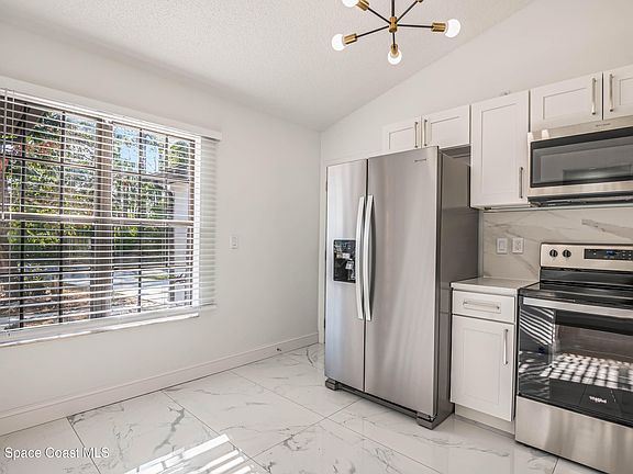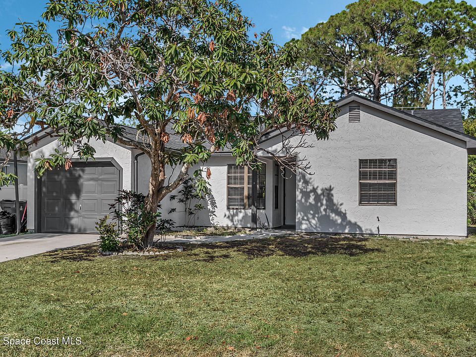 Charming Move-In Ready Home in Palm Bay! Well-maintained 3-bedroom, 2-bath home featuring a bright open layout with abundant natural light and stylish flooring throughout. The modern kitchen offers stainless steel appliances, ample cabinetry, and generous counter space, opening to a comfortable living and dining area perfect for gatherings. Bedrooms are spacious and inviting, with the primary suite boasting a private bath. Enjoy a landscaped backyard ideal for relaxing or entertaining, plus an attached garage and central air. Conveniently located near schools, parks, shopping, and major roadways.