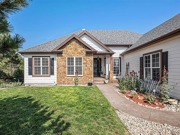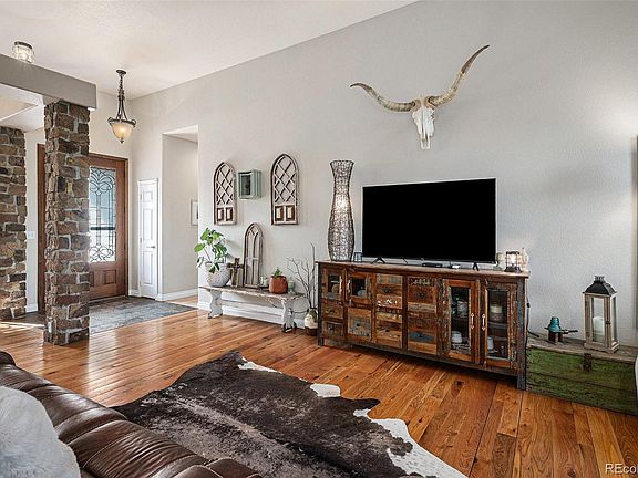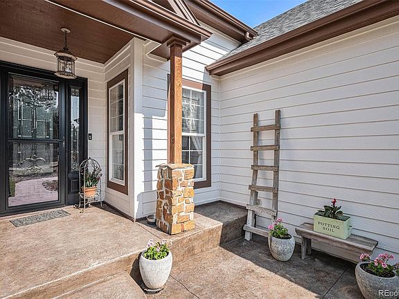 Come see this beautiful custom ranch style home nestled on almost nine stunning acres of Ponderosa pine trees. Located less than 2 miles from the beautiful town of Elizabeth. Open floor plan with tons of natural light, this inviting floor plan has everything you have been looking for. Upon entry you are greeted with beautiful wood floors. Spacious great room off kitchen with vaulted ceilings, stone cased gas fireplace and excellent views. Large eat in kitchen with granite counters, pantry, stainless appliances including gas stove. Formal dining room allows for large family gatherings. Main floor primary bedroom hosts a large walk-in closet, gas fireplace, five piece bath and private access to the back deck. Two additional bedrooms, one of which has it's own en-suite 3/4 bath reside on the main floor. There is a main floor study that could make a 4th main floor bedroom if needed. There is an additional 1/2 bath on the main floor, another full bathroom and a mud/laundry room with a sink. The finished walkout basement hosts a kitchen with refrigerator, stove/oven, microwave & dishwasher. Would make a great mother-in-law space or mutigenerational household. The open concept basement has a large family room with gas fireplace. Two additional bedrooms with walk-in closets and an updated 3/4 bathroom. The basement also has a media room or that room could also be a home gym. The wrap around back deck overlooking your own private forest is truly amazing. It's a perfect space for relaxing, family dinners and/or entertaining. The privacy & serenity this home offers is unmatched. Need an outbuilding? Foundation walls has been poured for a separate 48x30 outbuilding. Plenty of level space for horses and horse barn on the property if needed. No HOA! Don't wait to see this truly exceptional home and property.