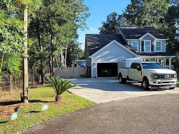 The 2216 sq ft home was built in 2018. The main level boasts an open concept with hardwood floors in the living room, kitchen, dining room, hall and half bath. The kitchen has a large island with access to electricity. The cabinets are tall 42 inch designer stacked, maple wood with a medium cherry finish and counters are light, beautiful granite. All Samsung appliances convey. The kitchen has a walk-in pantry with shelving on all walls. The owner's suite is on the main level and has a tray accent ceiling with a walk-in closet. The ceramic tiled master bath has double sinks, large shower and a soaking bathtub. The laundry room is on the main level with washer and dryer, both Whirlpool and conveying. From the laundry room you enter a two-car attached garage which houses a Rinnai natural gas, tankless water heater. You also find the home is pre-wired for an emergency generator and has an established four stage water filtration system for the property’s well water. Tucked above the garage door is where hurricane shutters
