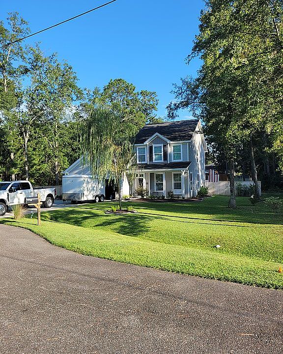 Tucked away on a beautifully wooded .35 acre lot, peace and tranquility await you. You first encounter a well-maintained lawn, complete with irrigation, established flower beds, encased with beautiful concrete curbing and an extra-large concrete driveway that can easily allow for four vehicles. The backyard was fully fenced in August 2022 and has three gates for access. Follow the driveway through the double access gate and you are directed to an oversized concrete pad, also installed in 2022, that can house your boat or RV. There is a 12 x 12 deck complete with pergola. Off the deck you discover an 8x12 BBQ Shack, complete with electricity.
