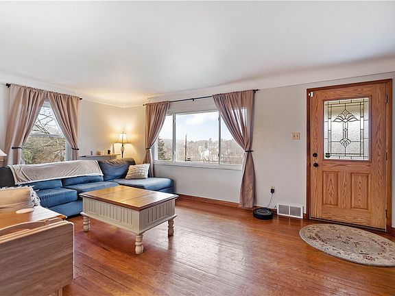 Very well cared for Ranch home setting on a SPACIOUS HOMESITE BACKING TO WOODS in the Franklin Regional School District! Home offers original timeless hardwood floors in the main living areas and bedrooms. The updated kitchen includes all appliances and the kitchen island / Table area. Off the kitchen is a side door for access to the covered porch and rear yard. Full bath on the main level has been updated and the lower level offers a full bath separated in different areas of the basement but there is a lavatory area as well as a shower. Bedrooms are nice sized for a raised ranch and master suite currently has a king sized bed in it. The lower level can be enjoyed as a game room as the sellers have been doing and there is additional storage room as well. NEW roof, concrete driveway and widened with new retain wall.
