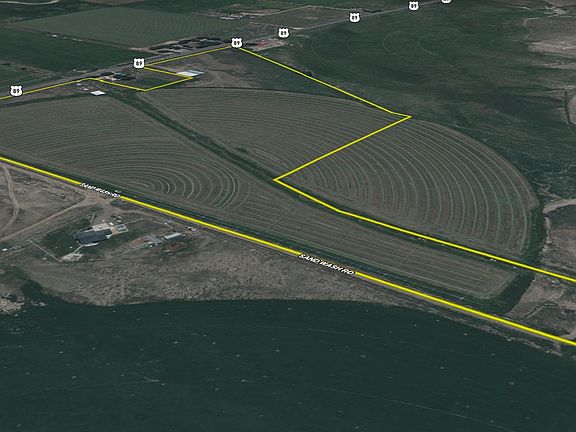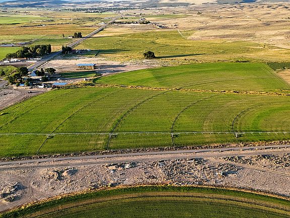 Two hay barnsPanoramic mountain viewsPerimeter fencingProductive crops and hayPivot irrigation system