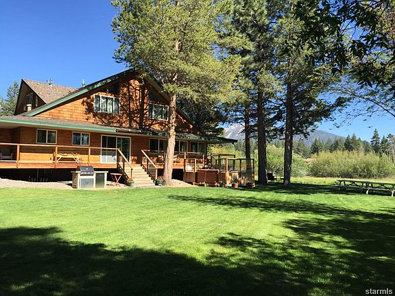 Gated 3/4 acre riverfront property set on Trout Creek. The property borders acres of forest service land and features unparalleled mountain and meadow views. Private, yet close in. Seven bedroom, four full bathroom home with ample parking, expansive lawn and wrap around deck. Comes completely turnkey! Plenty of storage! Improvements include: kitchen appliances, hot tub, CAT 6 wiring throughout, security system and gated entry.