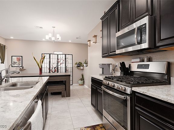 Fantastic property in this gated community with a functional floor plan for any buyer. All rooms are large & open. Huge kitchen with plenty of cabinet & storage space. All appliances included! The kitchen opens to the great room which is great for entertaining! High end flooring adds to the charm of this wonderful townhouse. Nice view from the balcony as well. The primary bedroom is spacious. Ceiling fans in each room. The secondary bedroom has it's own bathroom! The two car garage with direct access from the home is a great feature for ease of access & safety. Located near the pool, mailboxes, park & dog park. The community is conveniently located near restaurants, Craig Ranch Park, big box stores, local casinos & freeway access!