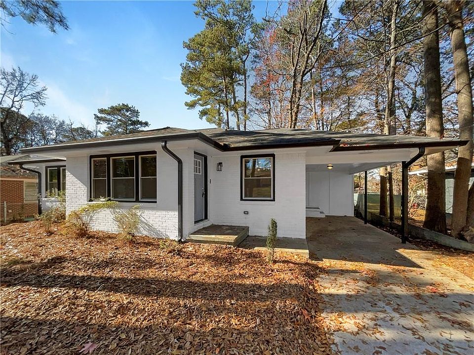 Discover this stunning 3-bedroom, 2-bath ranch home in desirable East Point! Boasting a chic, modern painted brick exterior and an attached carport, this move-in-ready gem offers a perfect blend of style and functionality. Enjoy an abundance of natural light that highlights the refinished wood floors and fresh neutral paint throughout. The beautifully remodeled kitchen features timeless white cabinets, quartz countertops, a sleek glass tile backsplash, and stainless steel appliances—ideal for both everyday living and entertaining. Both bathrooms have been thoughtfully renovated with modern finishes. Step outside to a fenced backyard complete with a deck, perfect for relaxing or hosting gatherings. With newer windows and countless upgrades, this home is the perfect combination of comfort and sophistication. Don’t miss your chance to call it yours!