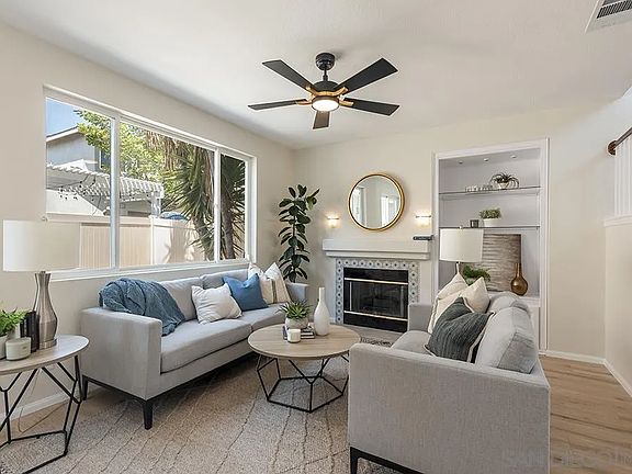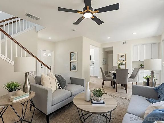 This updated home features a bright living room, large windows, modern ceiling fans, and updated bathrooms and kitchen. The kitchen includes stainless steel appliances, white shaker cabinets, quartz countertops, and a window over the sink for plenty of natural light. The primary bathroom is updated with dual sinks, gold fixtures, and a glass-enclosed shower. Light wood floors run throughout the main areas, and neutral finishes make it easy to personalize. Outside, a private, low-maintenance patio offers space to relax or entertain, complete with room for outdoor seating and décor. Located in a quiet neighborhood, this home is clean, modern, and ready for its next owner. The resort style Stonecrest Village features pool/spa, gym, playground and tennis courts for you to enjoy. Close to shops, Walmart, Costco, freeways.