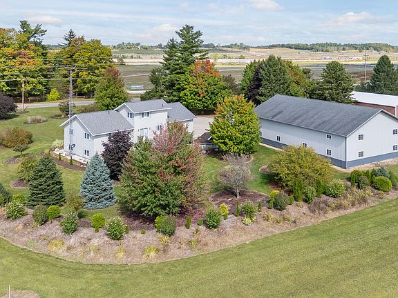Country Living Just Minutes from Town! This stunning 5-bedroom, 3-bath home sits on nearly 2 acres of beautifully landscaped property, offering privacy and space without sacrificing convenience. Inside, you'll enjoy the comfort and efficiency of central air and geothermal heating. The big basement provides plenty of space for family gatherings, a rec room, or whatever fits your lifestyle. Step outside to enjoy a large deck—perfect for entertaining—or explore the impressive 48x72 insulated pole barn with a loft and its own 200 AMP service. Whether you're dreaming of a workshop, storage, or even a future living space, this versatile structure has endless potential.