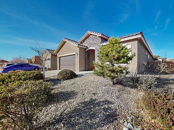 Beautiful single story Pulte home located in Yucatan Del Este at Cabezon. Located close to Chianti Park and the Cabezon trail system.Home features a corner homesite with wonderful curb appeal featuring a stone veneer front entry way. Interior features a large great room with gas fireplace, open kitchen with large island, executive birch cabinets, granite counter tops with tile backsplash. Extended patio in backyard with artificial turf to enjoy the beautiful New Mexico evenings and much more!2x6 construction with Build Green NM Silver level energy saving features including a high efficiency furnace/refrigerated air conditioning. low E windows, and a tankless water heater to keep the energy bills low.