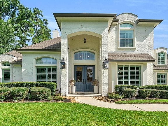 Stunning LIKE NEW custom home on 2 acres in Benders Landing, tucked on a quiet cul-de-sac with privacy and extensive updates throughout. Rare 10-car garage includes a tandem bay for RV or boat, an upstairs 20x20 office, and additional covered parking. INDOOR: Filled with custom built-ins in every room! Features include new paint—Venetian plaster in the primary suite—plantation shutters, new lighting and fixtures, remodeled bathrooms with new flooring, new carpet and updated appliances. The spacious kitchen opens to a bright family room with gas fireplace and views of the gorgeous backyard. Primary and guest suites are downstairs; upstairs offers 4 bedrooms with en suites and a fire escape. OUTDOOR: Extended covered patio, pool with spa and waterfall, basketball court, fire pit, accent lighting, no rear neighbors, new AC units, whole-home generator, and fully fenced yard with wrought iron fencing and automatic gate. A rare blend of luxury, space, and functionality—this one has it all!