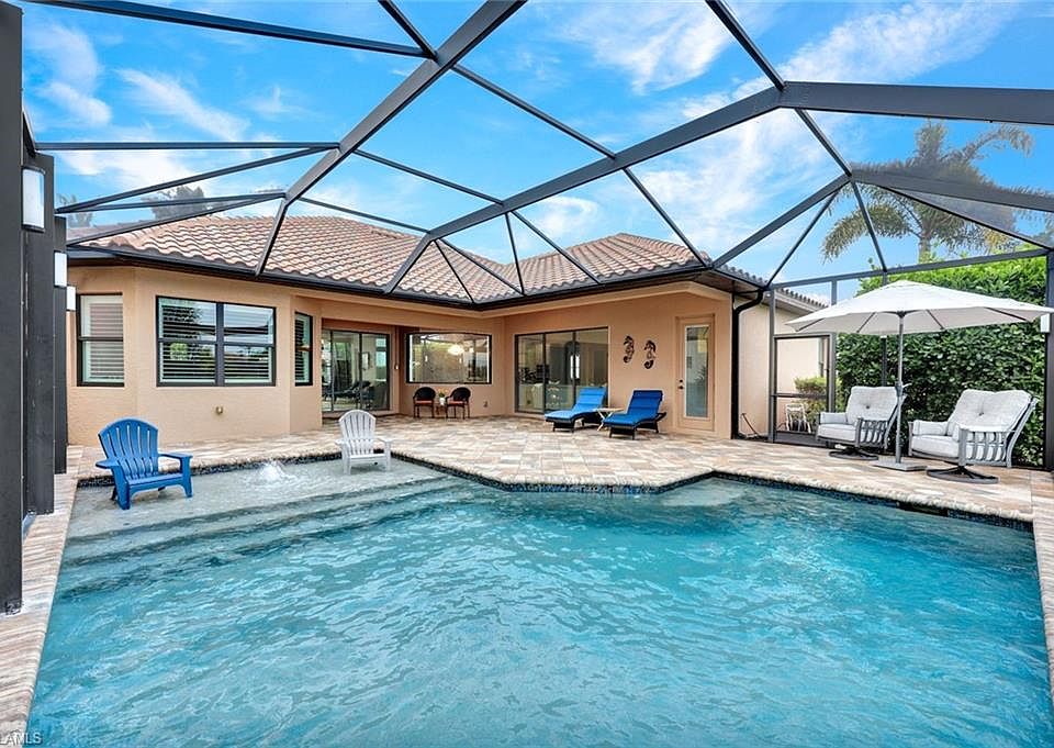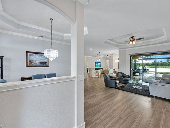 Experience luxury living in this beautifully updated Toscana model overlooking the 14th hole in the highly sought-after Bonita National Golf and Country Club. This open-concept floor plan has been thoughtfully redesigned to create a bright, spacious atmosphere perfect for entertaining and everyday living. The home features a stunning updated kitchen (w/ added pantry, painted cabinets, countertops & backsplash) brand new LVP flooring throughout, stylish plantation shutters, and fresh interior paint that enhances the light and airy feel. Step through the sliding glass doors to your own custom pool enjoy year-round sunshine in the heart of SWFL. Bonita National offers resort-style amenities including three restaurants, a lagoon style pool with pool service for food and beverage, Har Tru tennis courts, Gordon Lewis 18 hole golf course, a fully equipped fitness center, a relaxing spa, and sauna. Bocce ball and racquetball are also being added to the vibrant list of activities. Nestled within the tranquil embrace of a natural wildlife preserve, this premier residence offers exceptional privacy and a serene escape from noise, all while placing you at the heart of Southwest Florida’s most coveted conveniences. Revel in peaceful mornings surrounded by protected landscapes, and then take advantage of easy access to the best of the region—Barefoot Beach is only 12 miles away or enjoy a night out in downtown Naples, while RSW is a short drive, ensuring effortless travel for business or leisure. The vibrant new Midtown district, poised to become a hotspot for dining, shopping, and entertainment, is just moments away, guaranteeing the perfect balance of secluded luxury and urban excitement in Bonita National Golf and Country Club.