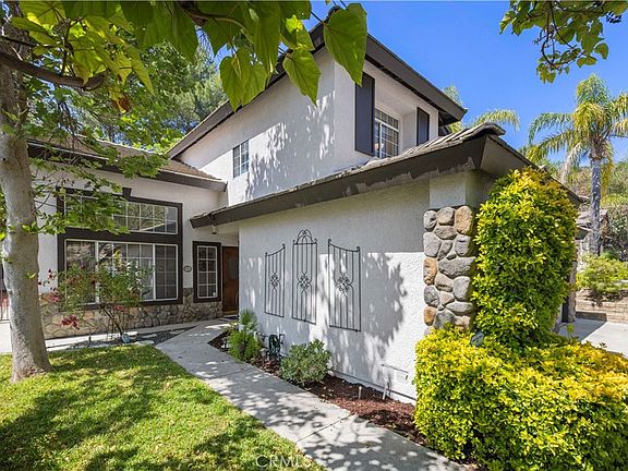 Cul-De- Sac home!! This spacious home features a bright open living room with cathedral ceilings and extra upper windows that allows for the warm glow of natural sunshine to flow into the house. The kitchen has newer ( 2024) white appliance that are included and opens into Family room with fireplace. Main level bedroom has been used as a yoga studio and radiates a warm welcoming feeling and is located next to the main level full bath . Primary bedroom is extra spacious with a lovely sitting area for relaxing, reading or just being still after a long day. Primary bathroom gives the feeling of being outdoors as you look out at the large shade trees in the quiet peace filled back yard with spa. This home is located just minutes from Castaic lake and is near a large park. I'll let the pictures do the rest of the talking about this sanctuary feeling of a home.