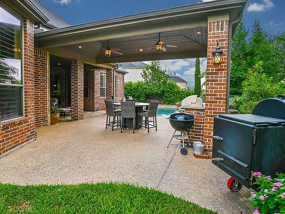 You can have it all with this home in the heart of Firethorne. This beautifully customized Highland Homes plan is situated on a 15,000 sq ft lot. Features include custom paint, plantation shutters, hand scraped hardwoods, stone fireplace inside and out, flagstone pavers, upgraded cabinets/countertops, private office with built in shelves, hand stained wood trim, mud room, butlers pantry/bar area with ice machine, entertainers kitchen, amazing outdoor patio with fireplace, extended patio with outdoor kitchen, pool and spa, elevated stone garden area, media room, game room and 3 large bedrooms upstairs with every bedroom have access to a bathroom as well as 2 additional half baths one up and one down and a 4 car oversized garage. Two garage doors are at 10 ft tall and a 5th garage door leads to an outdoor space in the rear yard. See upgrades list for more details on this amazing home.