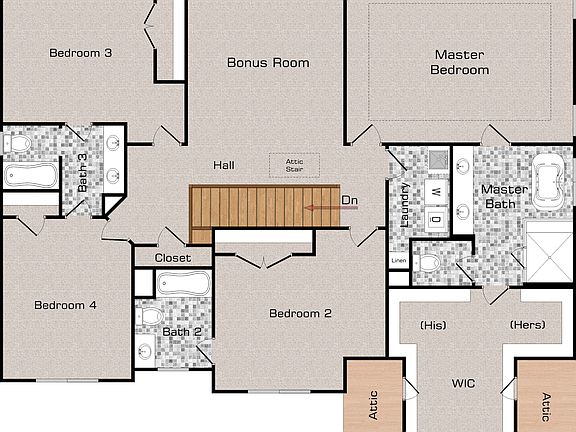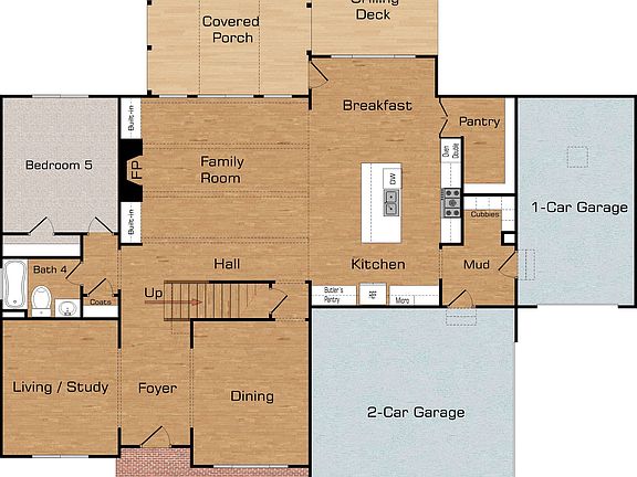 The Hammond, our most popular plan, is an open concept plan with large kitchen, oversize kitchen island, large mudroom and secret pantry (cabinet doors that open up to a large walk-in pantry). The five bedroom, four bath home has a large media room upstairs with a great master suite with oversize master closet.