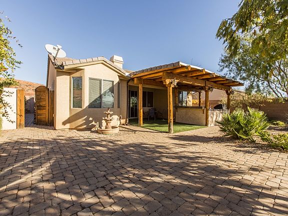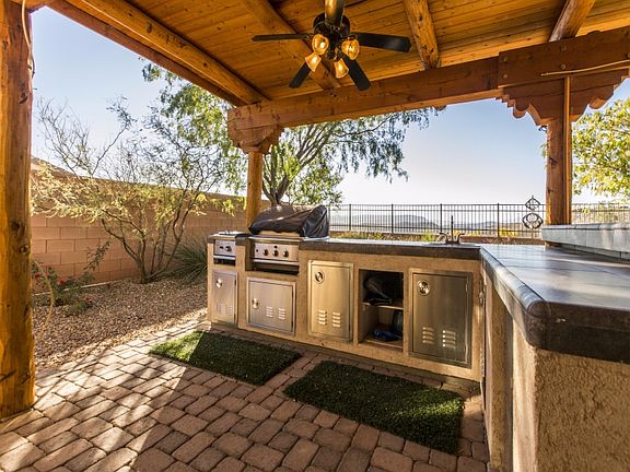 COME SEE THIS HOME! Well kept home with new laminate wood flooring, big laundry room with cabinets, custom tile surround ontub and sinks in the bathrooms, outdoor kitchen overlooking golf course and valley, with outdoor lighting, builtin BBQ, fridge and sink, outdoor Kiva/fireplace.