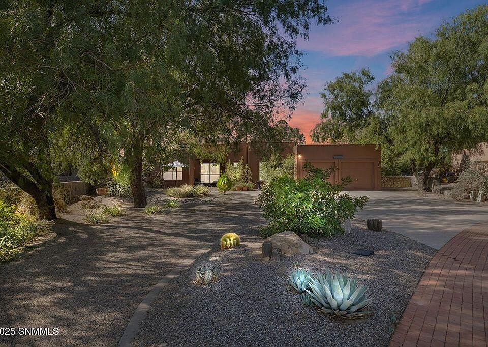 This charming Southwestern-style home, just minutes from the highly desirable Historic Mesilla Plaza, is sure to capture your heart. With over 2,400 sqft of heated living space, it features beautiful Southwestern details like exposed wood vigas and a kiva-style gas fireplace in the spacious living room, making it the perfect blend of warmth and style. The gourmet kitchen is ideal for any home chef, complete with stainless steel appliances, granite countertops, a cozy breakfast nook, and custom Alder cabinetry. A separate formal dining room that's perfect for entertaining. Abundant natural light fills the home, and the heated/cooled enclosed sunroom offers year-round enjoyment with views of the beautifully landscaped backyard. A rear gate provides convenient access to the community pool and the tennis court. Both the primary and guest bedrooms include French doors that open to the sunroom, creating a seamless connection between indoor and outdoor living. Call the listing broker now before it's gone!