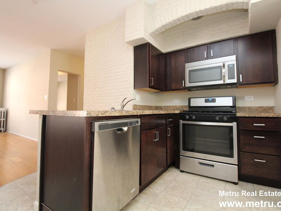 Available 1/27/26 or later. This is a fantastic top floor renovated two bedroom in the heart of East Lakeview, on the border of Lincoln Park. This great unit features two equal sized bedrooms, a large eat-in-kitchen with granite counters, stainless steel appliances, hardwood floors, a modern bath, and a large private deck. The large living room features a wood burning stove fireplace. Renovated kitchen with stainless steel appliances (incl. dishwasher and built-in microwave) and new espresso cabinetry - new bathroom vanity, mirror, lighting - refinished hardwood flooring throughout - spacious bedrooms w/ ample closet space - online resident portal: pay your rent, submit maintenance requests, contact management - right on the border of Lakeview and Lincoln Park, so you're steps to everything! Shopping, dining, nightlife, entertainment, public transportation - permitted street parking - one window a/c unit included with apartment. Laundry is onsite. Additional onsite storage available, if needed. Lease Terms: $79 application fee per person. $350 admin fee per tenant; no security deposit. Pets are welcome, 2 pets max, no weight limits or breed restrictions, $250 pet fee per apartment and $30 pet rent/month per pet. Renter's insurance is required. Tenants pay all utilities, including electricity, gas, cable/internet, and water/sewer/trash. Flexible lease terms are available. Pricing and availability can change without notice. Photos are of the unit directly downstairs, which has the same layout and finishes/features as the available apartment.