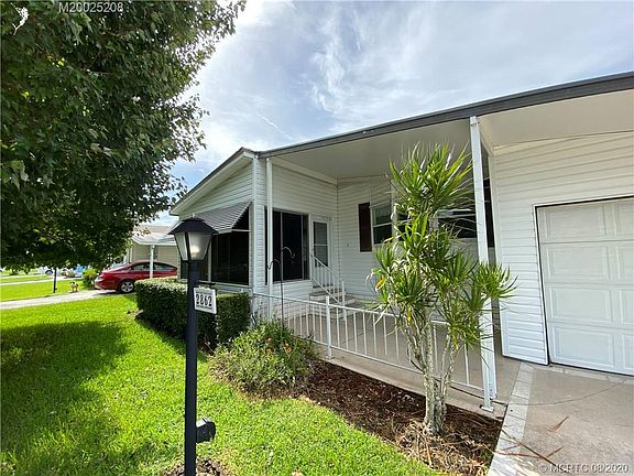 CHARMING and Unique home in St. Lucie Falls featuring a true 2 car garage. Community is Active 55 plus with 2 community pools, 2 Clubhouses, boat ramp, tennis courts, pickleball, Bocce Ball, Fitness center, ping pong tables, shuffle board and events galore!